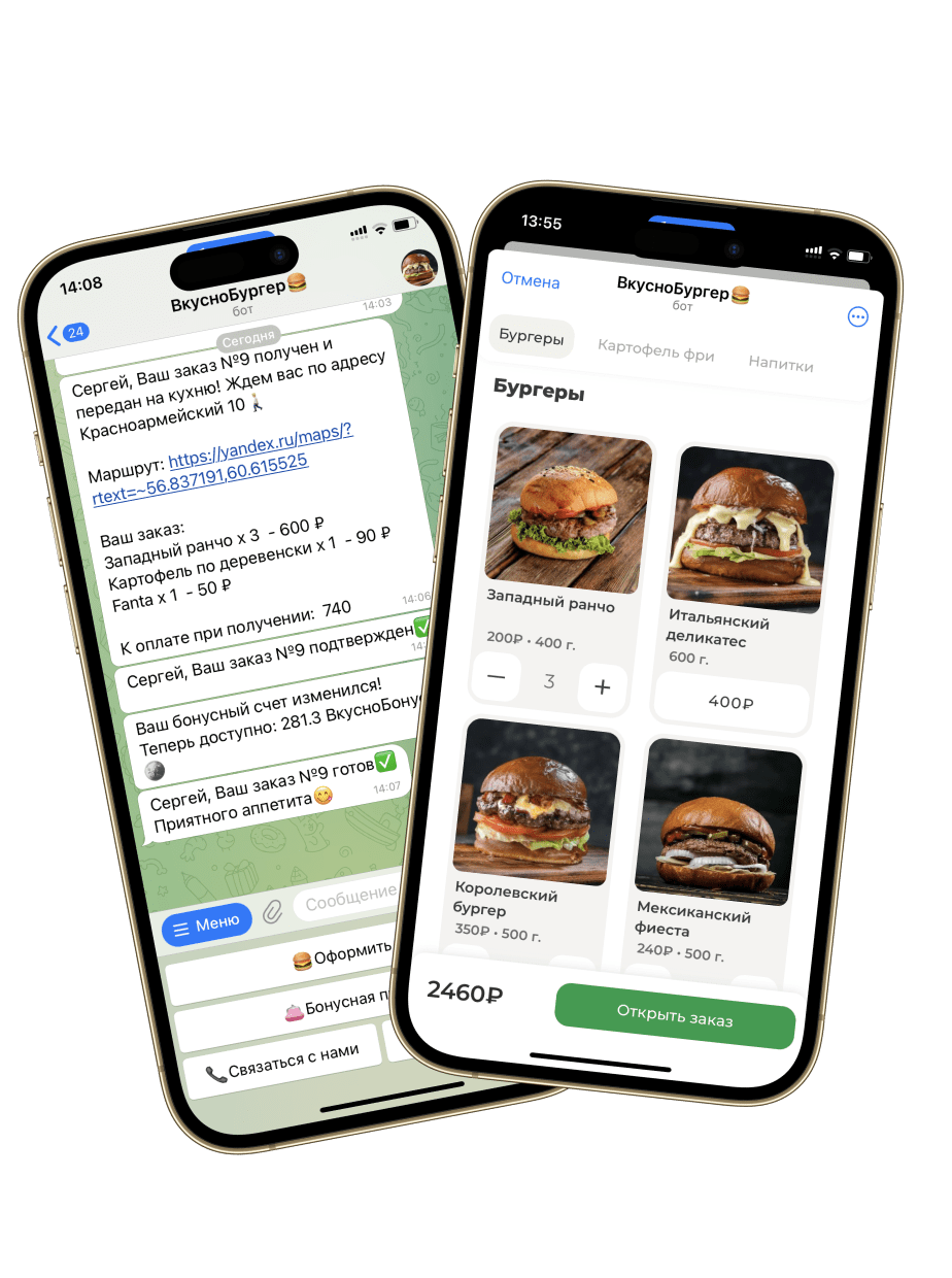 Оформление заказа через Telegram бота с получением уведомлений при изменении статуса. Поддержка программы лояльности, оплаты и рассылок