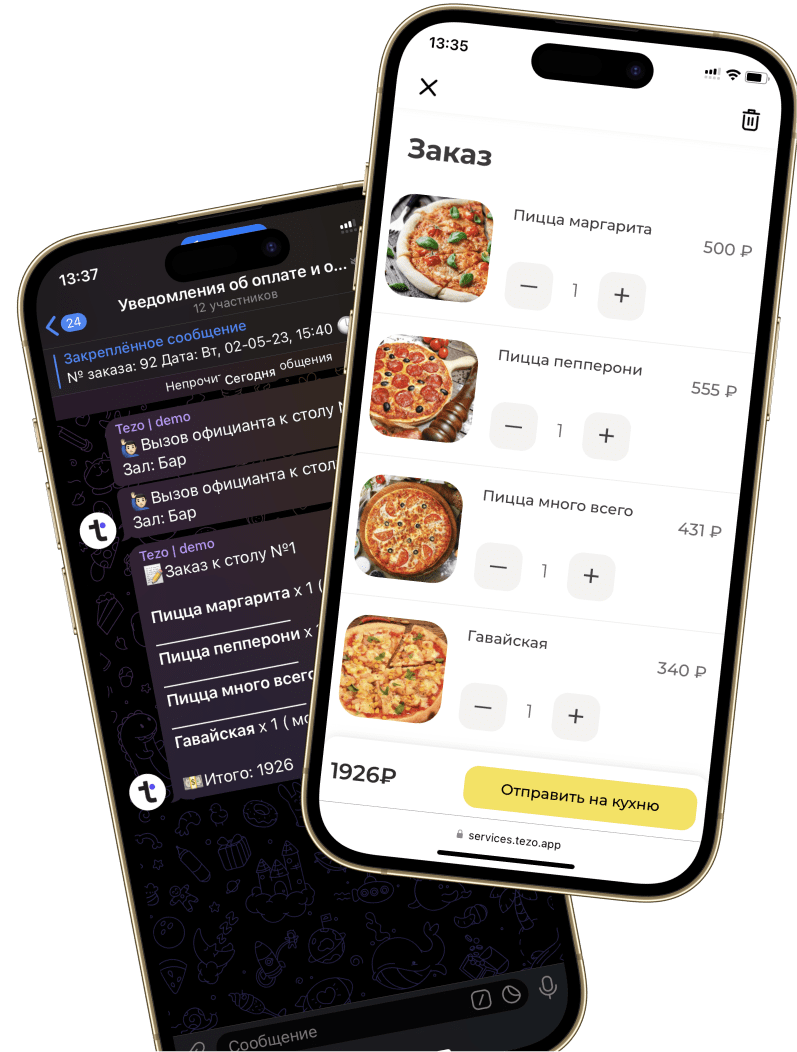 Заказ может быть отправлен в стол IIKO/R_keeper. Также заказы дублируются в чат Телеграм